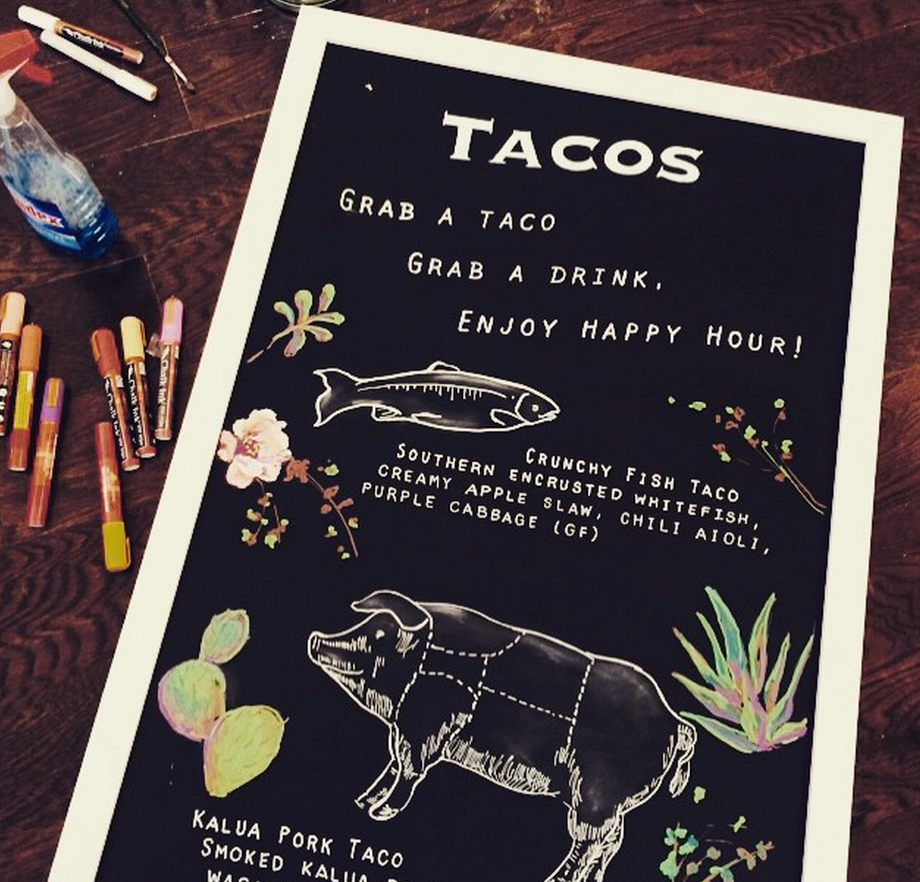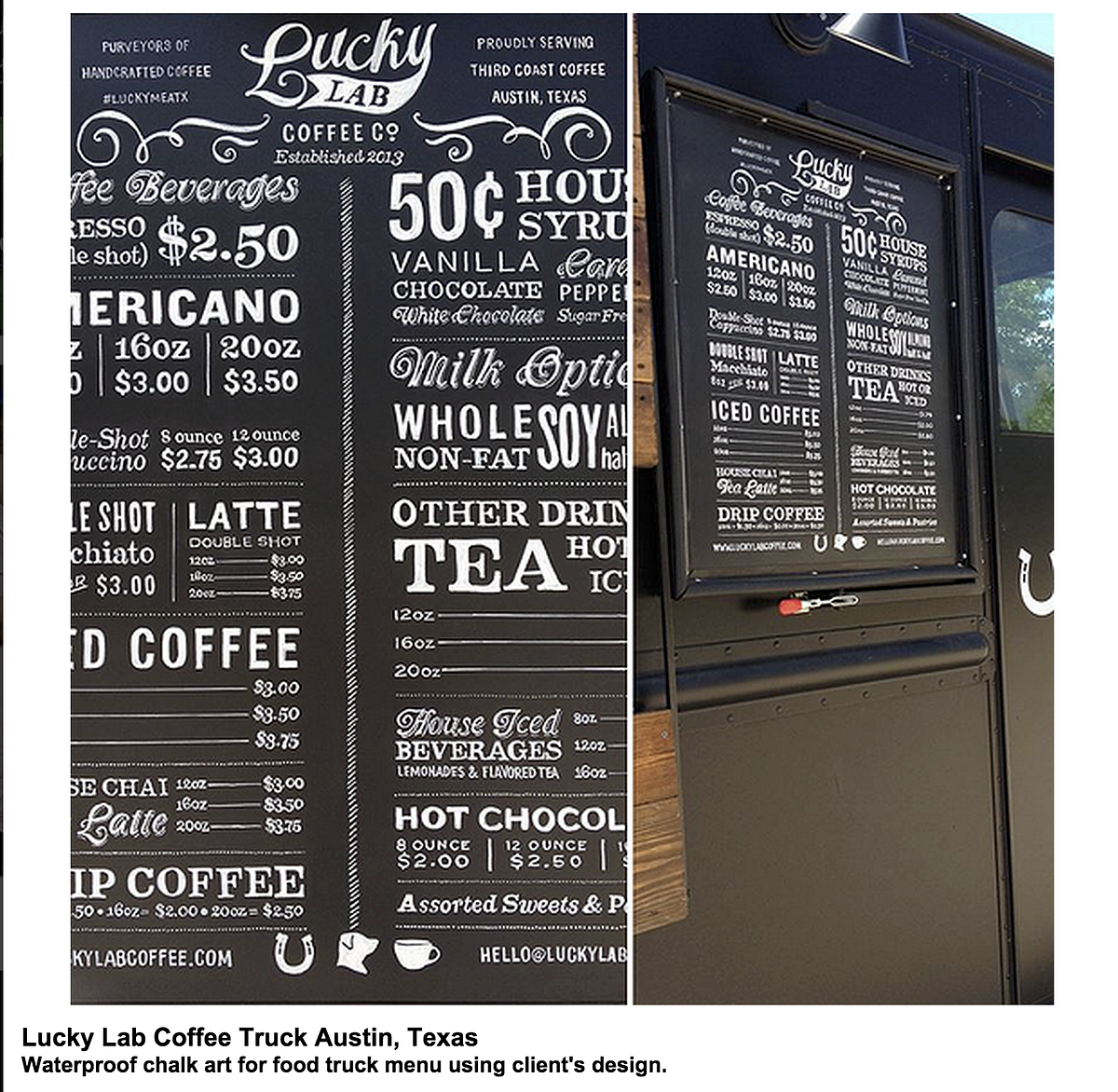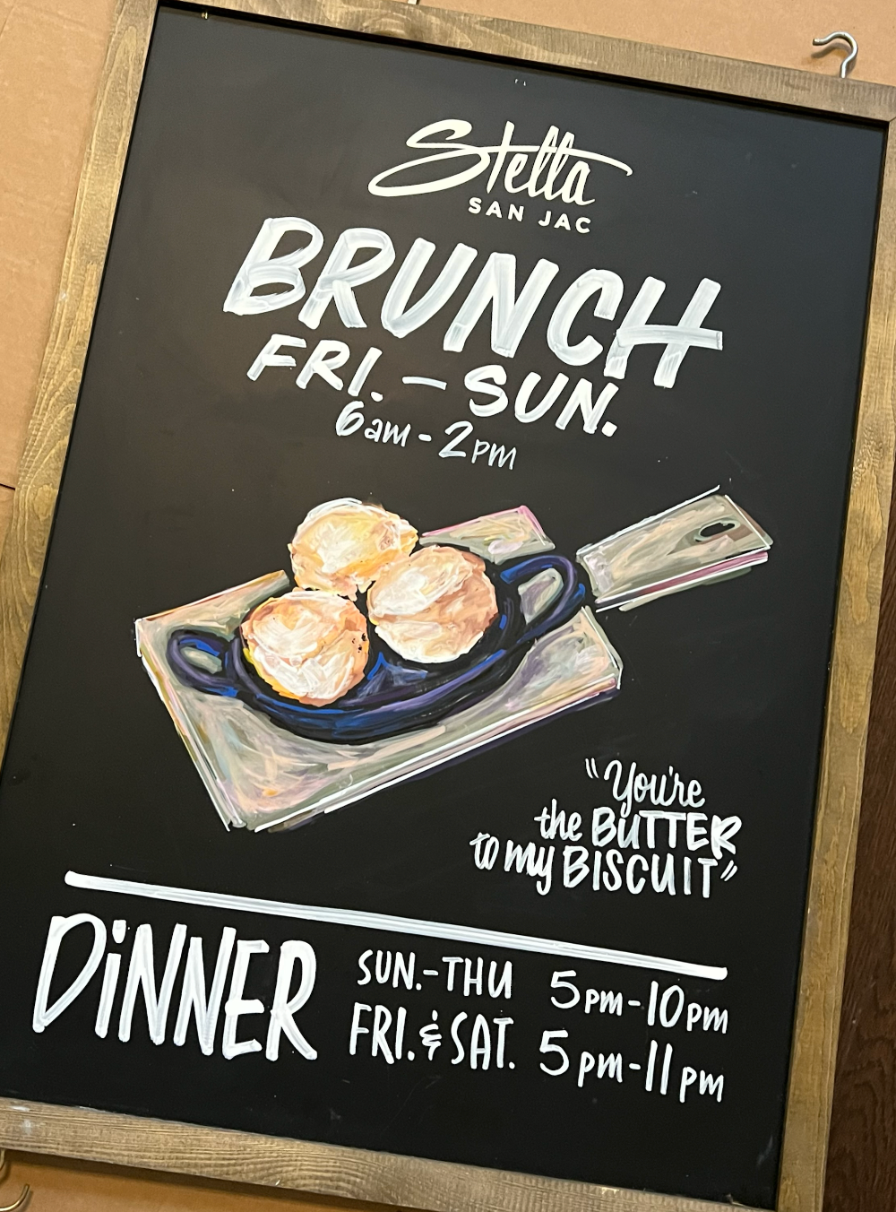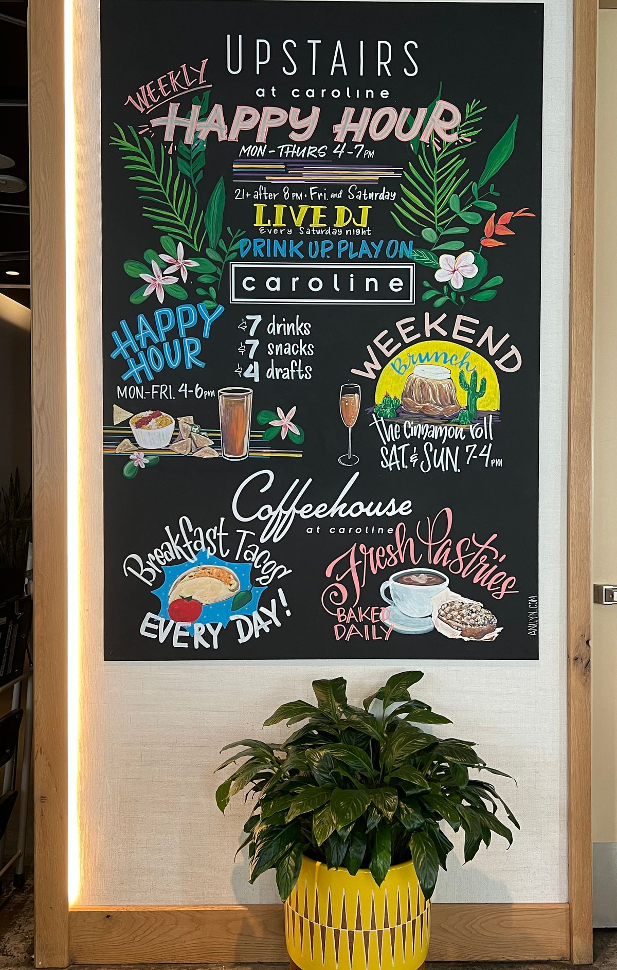 We are a sign art consulting company bringing high-quality art to events, food and retail spaces, and client homes. Our style is sophisticated yet familiar. We can use your existing artwork and branding or design something brand new for you. We like to prioritize making the creative process smooth and easy